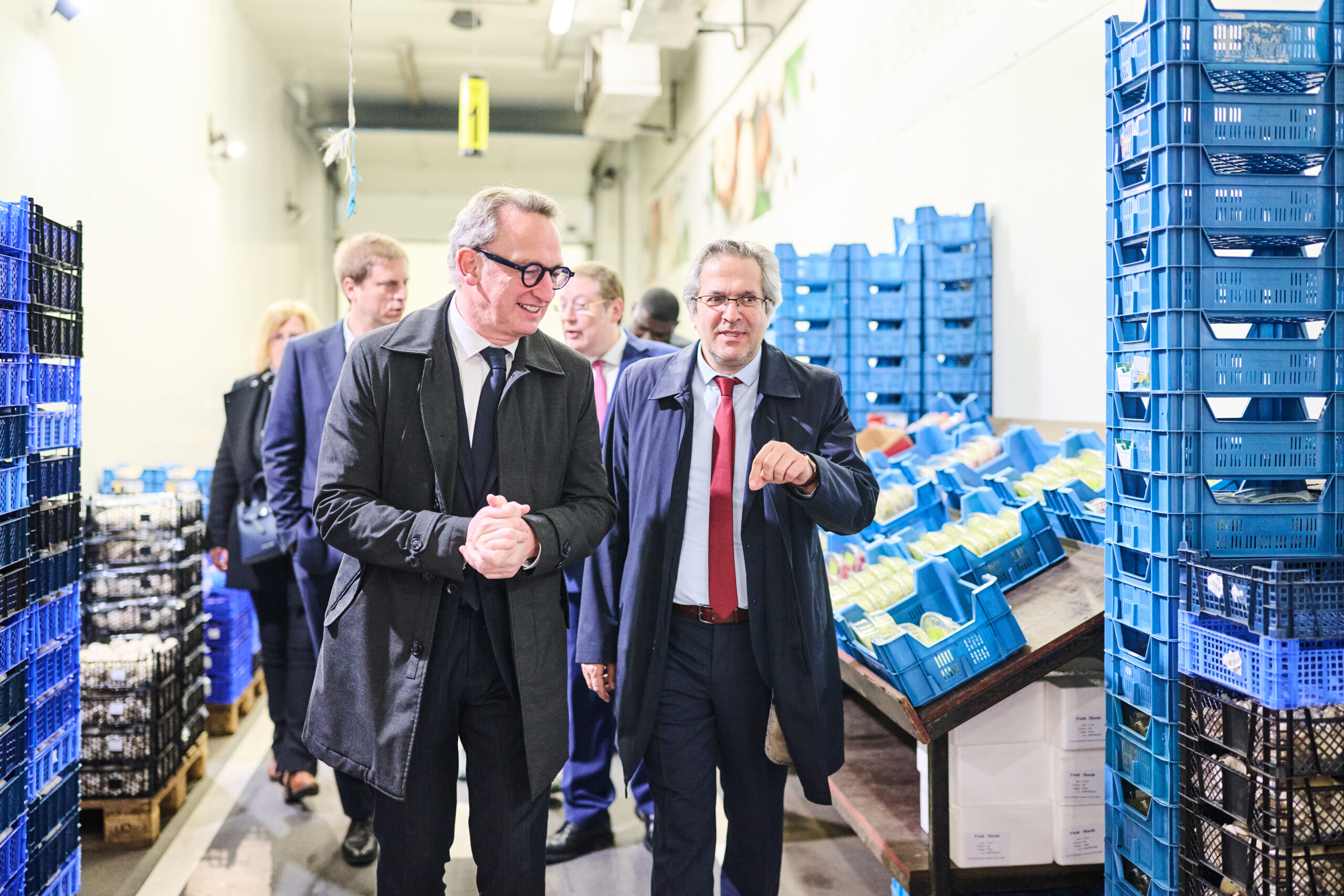 Organisée dès 5 heures du matin, cette visite visait à mettre en lumière le rôle stratégique de l’asbl Mabru, acteur clé de l’approvisionnement et de la logistique alimentaire en Région bruxelloise, ainsi que l’importance de ses activités pour le gouvernement.